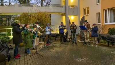 Bläsermusik mit Advents- und Weihnachtsliedern beim Weihnachtsmarkt in Reinickes Hof | anschließend in der Blunckstraße und im Heiligental